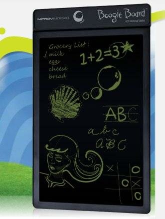 You've probably never heard of a Boogie Board LCD Writing Tablet. That's because it's brand new - the first ever LCD writing tablet. Not only is the Boogie Board Tablet new, it's revolutionary! The Boogie Board tablet is the tree-friendly electronic alternative to paper, pencils, and pens. With Boogie Board users of all ages will truly say goodbye to paper forever - and it's just as easy to use! Simply press on the surface with the included stylus or other suitable writing instrument (even your finger) to create an image and then erase with the push of a button. With the Boogie Board LCD writing tablet, you'll never be without a memo pad again. No pen or pencil, no problem!
