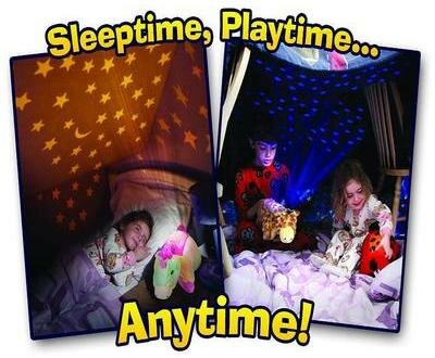 The Pillow Pets Dream Lites - is the night-lite that makes bed time FUN! Pillow Pet Dream Lites are the amazing nightlight that turns your room into a starry sky instantly. Simply press the button it projects a starry sky on your ceiling and walls! Creates a magical and tranquil environment that helps kids ease into a restful sleep. They are even great for playtime. Built in timer shuts off after 20 minutes. Folds up into a pet or opens to lay flat.