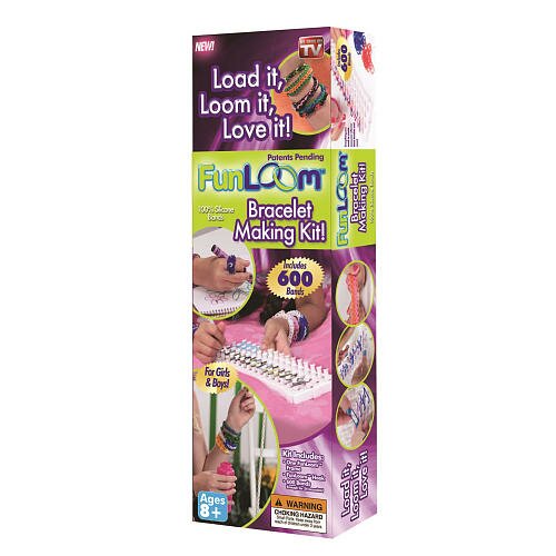 Fun Loom As Seen On TV is simply the best loom available for making rubber band bracelets, rings and so much more! 4 rows of pins so you can create more designs. Easier to use with wider spacing, smooth edges, wider head to better hold the rubber bands, larger hook tool to hold more bands and keep them from slipping off the tool, and designed so you can attach as many Fun Looms together as you wish to make longer and wider designs. Make colorful bracelets, rings, hair ties, anklets, belts and much more with Fun Loom! Fun Loom Bracelet Making Kit uses 100% silicone stretchy bands in a rainbow of colors. The 100% silicone quality bands provide brighter colors, no fading and won’t pull hair or skin. Using fun loom is easy load the loom board with your favorite color bands. Use the hook to link the bands in a pattern and pop it off the board and clip to finish. Reusable – easily take your creations apart and start over! Fun Loom as seen on TV the creation station for your imagination! Includes one Fun Loom Frame, Fun Loom Hook, 600 Silicone Bands and Instruction Guide. Ages 8+