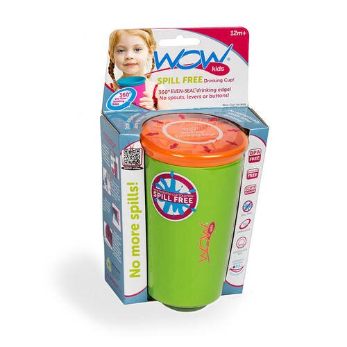 New Innovative Spill Free Drinking Cup for Kids that is age-rated from 12 months to early adolescents. Features a 360 degree EVEN-SEAL drinking edge! No spouts, levers or buttons! The Wow Cup provides lots of fun as training cup or as an everyday cup for the entire family at home, school or on the go. It's small enough to be handled by those children exhibiting advanced coordination in the early toddler years and big enough to be used by older children without it looking like a baby cup. Parents even love to drink from them.